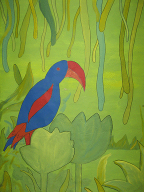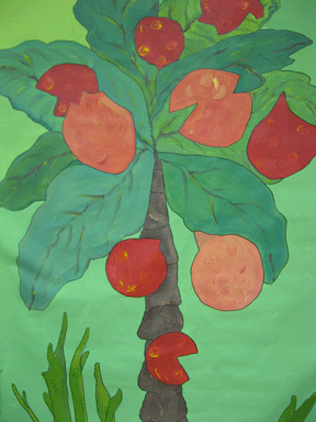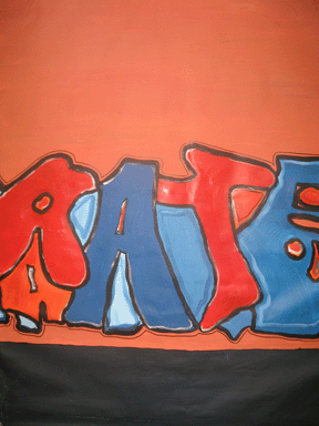 Vanaf 2006 ben ik betrokken bij theatergroep ROET, ik ontwerp en maak decordoeken. Ook voer ik workshops uit op scholen (decor en affiche maken)